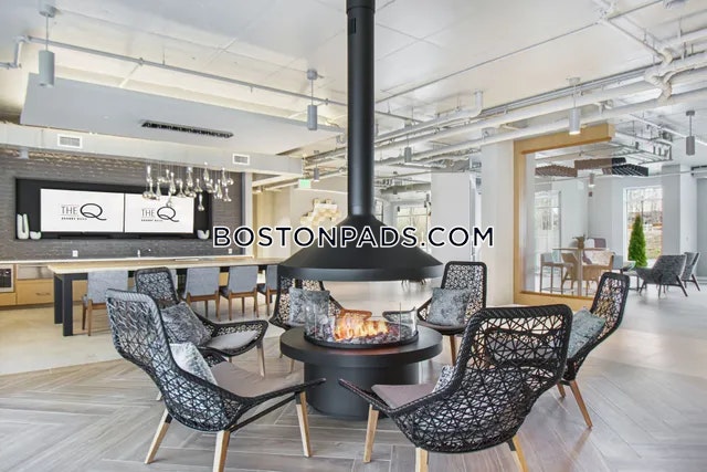 Located in West Quincy, this 1-bedroom, 1-bathroom apartment offers modern features within a luxury building at The Q. The unit includes a dishwasher, in-unit laundry, and air conditioning for added comfort. Residents can enjoy outdoor amenities such as a roof deck and a courtyard. Pet-friendly accommodations make this a welcoming space for animal companions. Flexible move-in date available.