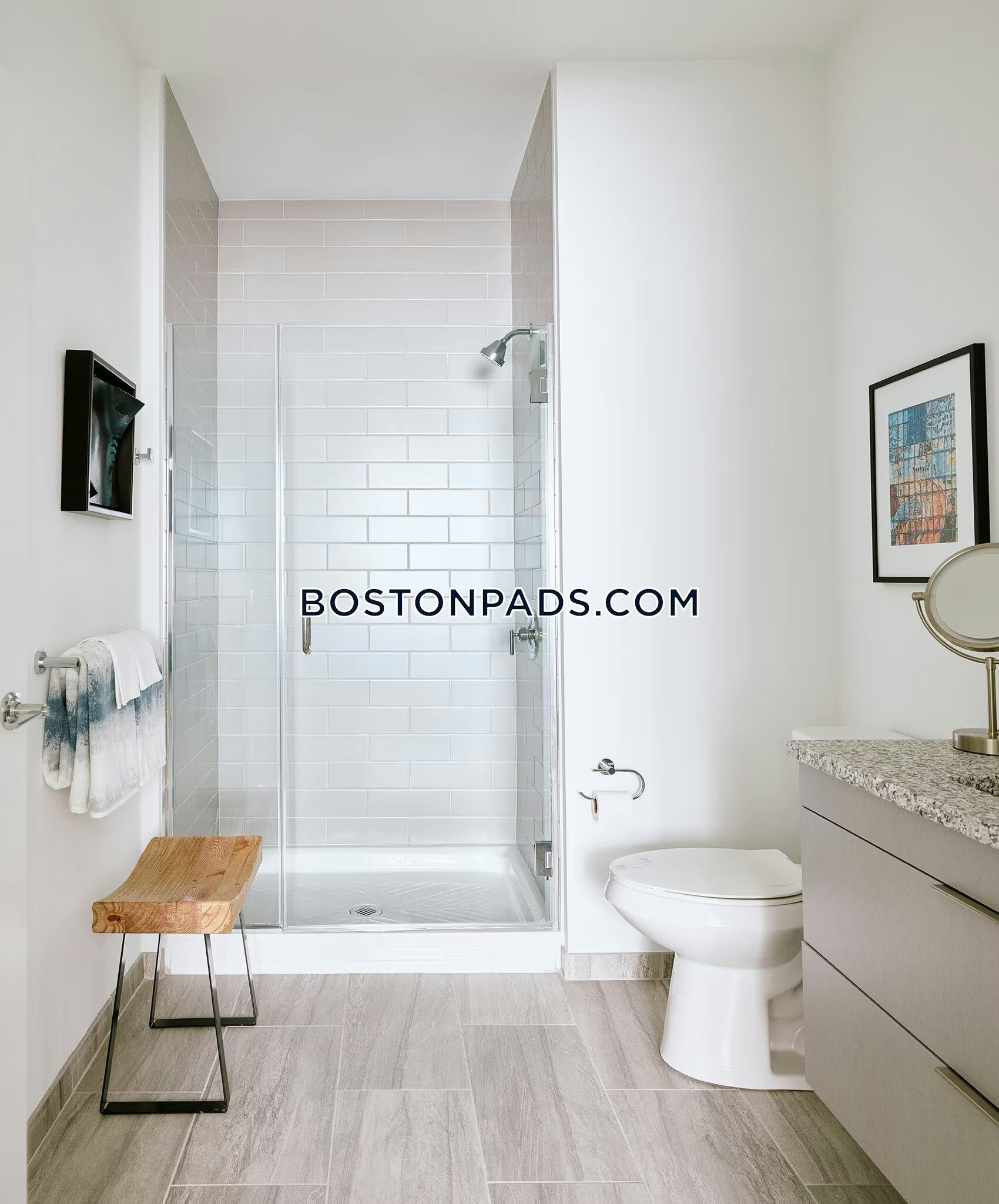 This modern Studio 1 bath in Quincy is available Now.Open kitchen Parking Garage Pet OK